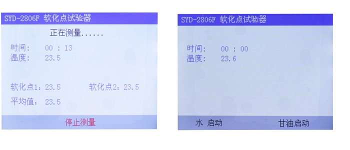2、儀器可以同時測試兩個樣品的軟化點,試驗完畢自動生成平均值,儀器蜂鳴提示,并自動測試結果,測量結果穩(wěn)定可靠。