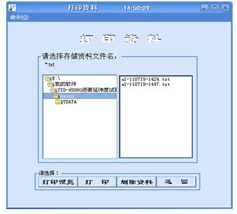 點擊文件選擇列表框中選取已有文件(文件名以樣品編號命名),點擊本窗體的打印預(yù)覽或打印按鈕,即可預(yù)覽或打印試驗報告。