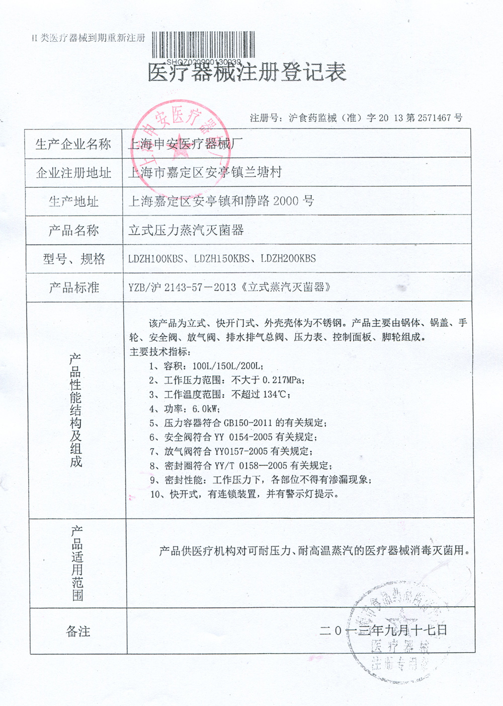 滬食藥監(jiān)械(準(zhǔn))字2013第2571467號(hào)