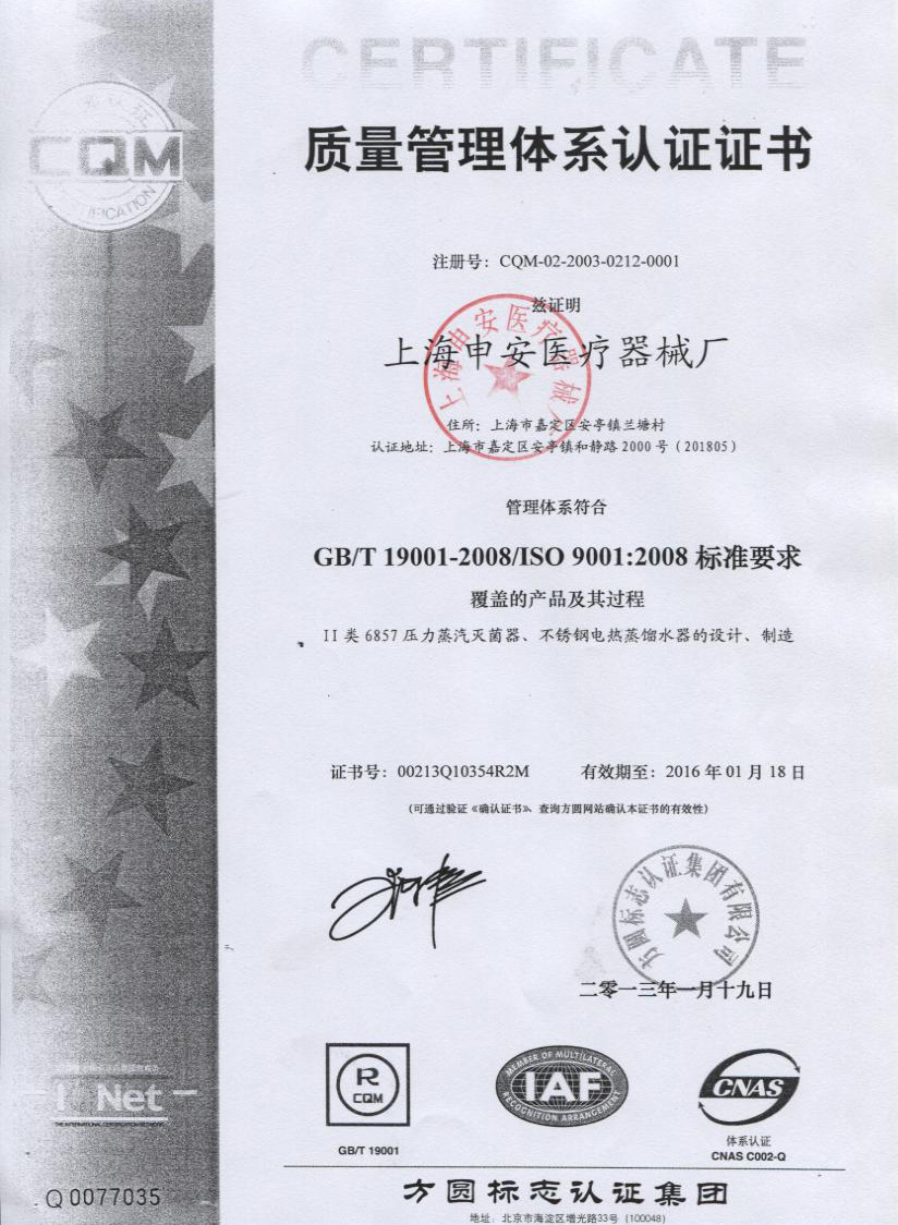 - ISO9001:2008國際質量管理體系認證